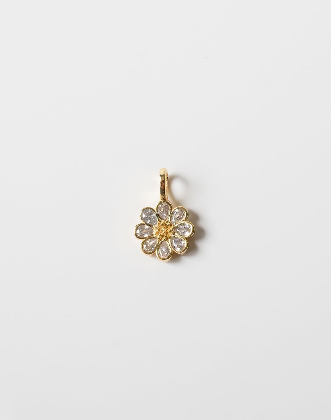 Our CZ Flower Charm features delicate cubic zirconia petals and a raised detail center, offering a subtle sparkle and floral touch.